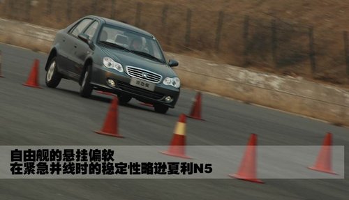 相對于夏利N5和新羚羊,自由艦在緊急制動時的點頭現(xiàn)象比較嚴重,駕駛員在車內會有明顯“下扎”的感覺。在同等速度下,自由艦較重的車身會帶來更多的慣性,使制動距離相對較長。