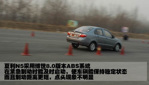 最后進行的是緊急制動項目,主要考核車輛在緊急制動時表現(xiàn)出的穩(wěn)定性,以及車輛剎車的有效距離。由于緊急制動時,三款測試車輛的時速各不相同,所以結果也會有所差別。夏利N5測試時的時速比較高,達到了近90km/h的速度,但這款車的制動距離仍然保持在可控范圍之內,而且點頭現(xiàn)象也并不明顯。另外,夏利N5配備的博世8.0版本ABS系統(tǒng),在緊急制動時能及時啟動,使車身保持在穩(wěn)定狀態(tài)。