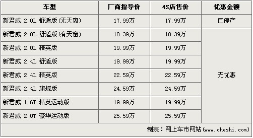 根據(jù)北京別克經(jīng)銷店銷售人員介紹,全系入門級的無天窗2.0L舒適版已經(jīng)停產(chǎn),取而代之的是加裝了天窗的2.0L舒適版車型,售價上也比無天窗車型貴了4000元,售18.39萬元。店內(nèi)只有2.0L精英版有現(xiàn)車,現(xiàn)車數(shù)量有限,欲購買其他車型的消費者需交訂金1千元,最高下個月可提車。