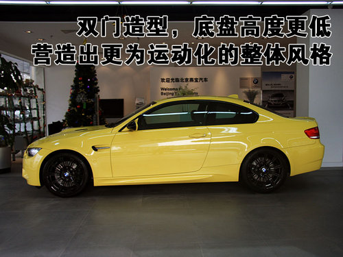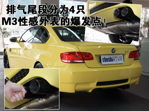 雖然外形和普通BMW3系很相似,但是他們和普通BMW3系相同的也只有這些。由于代表寶馬尖端性能的跑車,M3的車身采用了大量輕量化的材料,懸掛和車身部件大量采用了鋁合金輕量化材料,使車身整備質量大幅度降低,因為誰都知道“輕巧”和“笨重”之間的含義,輕巧而剛強的車身是操控敏捷性的前提。不過,由于外形更大,這款M3比它的前輩重160千克。