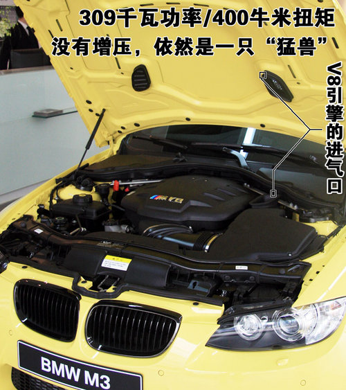 M3的底盤設計理念和超級跑車還是有所不同,它的車底離地間隙雖然比普通寶馬轎車低了一些,但是底盤設計型式是標準的寶馬模式;前短前懸、前置發(fā)動機后輪驅動、長軸距和50:50的前后軸質量分配。駕駛座椅非常具有運動風格,但是真皮的包裹還是表明它并不是為比賽而準備的。這種差別在追求賽車感覺的同時,也考慮行駛的舒適性,這正是寶馬的運動理念,和GT公路跑車的設計理念有些接近。