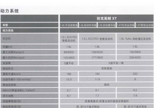 別克英朗的動(dòng)力匹配包括1.6、1.8自然進(jìn)氣和1.6T渦輪增壓形式,相比同樣以操控和動(dòng)力性而著稱的高爾夫系列車型,別克英朗在外形尺寸、軸距以及排量和動(dòng)力上都略占優(yōu)勢(shì)。并且升功率對(duì)比上,英朗的1.6T引擎擁有73.33的升功率而高爾夫6 1.4TSI為68.57。
