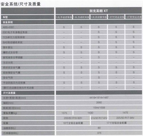 別克英朗提供了較多的車輛電子安全系統(tǒng),包括:ABS、EBD、CBC、EDC,最新版本的ESC系統(tǒng)和大尺寸剎車碟。前排4只安全氣囊在同級(jí)別車型的配備中算得上是中規(guī)中矩,沒有側(cè)面頭部安全氣簾也許是英朗整車上為數(shù)不多的因成為而妥協(xié)的安全配置。
