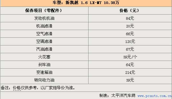 凱越保養(yǎng)周期為5000公里,保修為2年或者6萬(wàn)公里。首保在5000公里之內(nèi)保養(yǎng),之后每5000公里保養(yǎng)一次。更換機(jī)油機(jī)濾的常規(guī)保養(yǎng)為161元,在行駛到6萬(wàn)公里時(shí)需要做一次比較大的保養(yǎng)價(jià)格為868元,凱越平均一年兩萬(wàn)公里保養(yǎng)費(fèi)用大概1334元。