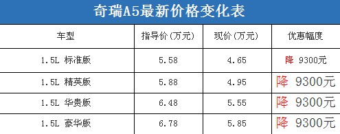 近日,編輯從北京地區(qū)綜合經(jīng)銷商處了解到,奇瑞A5的現(xiàn)車充足,有黑色和灰色現(xiàn)車;目前購車的優(yōu)惠幅度接近1萬元,最低配的標(biāo)準(zhǔn)版奇瑞A5已經(jīng)僅售4.65萬元。據(jù)經(jīng)銷商透露,消費(fèi)者要想以這個(gè)價(jià)格提車,需要在店內(nèi)做一條龍,其中車輛四項(xiàng)基本保險(xiǎn)可以打9折。以下是奇瑞A5最新價(jià)格變化表: