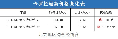 近日,編輯從北京地區(qū)綜合經(jīng)銷商處了解到,卡羅拉有1.6L特別版現(xiàn)車(銀色、黑色、紅色);目前購車的優(yōu)惠幅度與09年末相比有了顯著提升,最高優(yōu)惠1.12萬元,性價比還不錯。據(jù)經(jīng)銷商透露,消費(fèi)者要想以這個價格提車,需要在店內(nèi)做一條龍服務(wù),其中車輛保險的折扣需要消費(fèi)者到店與銷售人員詳談才能夠確定。以下是卡羅拉最新價格變化表:
