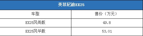 售49.8-53.01萬 英菲尼迪EX25中國上市