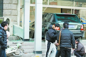 昨天下午4時(shí)許,北三環(huán)安華橋西北角的瑞德大廈門(mén)前一片狼藉。一輛原本要停車(chē)入位的路虎越野車(chē),撞進(jìn)了大廈門(mén)廳左側(cè)的玻璃門(mén)。正在門(mén)前執(zhí)勤的保安反應(yīng)迅速,才躲開(kāi)了這只“瘋狂”的“老虎”。