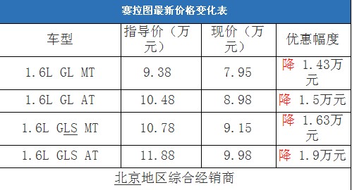 賽拉圖1.6GLS MT車型與1.6GL MT車型在配置方面增加了遙控鑰匙、電動天窗、倒車?yán)走_(dá)、多功能顯示屏、真皮座椅、后視鏡加熱等,而1.4萬元的差價不如消費(fèi)者自行選裝這些配置合適。1.6GL MT車型與1.6 GL AT車型在指導(dǎo)價上相差1.1萬元,除了變速箱有所區(qū)別其他配置完全相同,而對于該車并不很先進(jìn)的4速自動變速箱而言這樣的差價沒有太大優(yōu)勢。由以上兩點(diǎn)可以看出,消費(fèi)者如果想要購買賽拉圖,那么最低配的1.6L GL MT車型顯然是性價比最高的選擇。