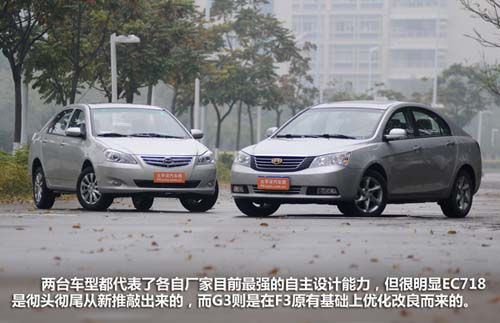 同樣不足9萬(wàn)元就可以從經(jīng)銷商店里開(kāi)出來(lái);同樣給到你超乎想象的豐富配置;同樣是兩個(gè)自主品牌進(jìn)軍“中高端市場(chǎng)”的首發(fā)車型,實(shí)在有太多的理由要把比亞迪G3和吉利帝豪EC718這兩臺(tái)新力軍車型一起拉出來(lái)溜溜。但實(shí)際上不需要五分鐘時(shí)間,甚至還沒(méi)有把車子動(dòng)起來(lái),光是靜態(tài)觀察已經(jīng)足夠明白兩款車的不同取向。