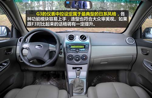 雖然比亞迪G3的總體內(nèi)飾設(shè)定還是能夠找到不少其他車型的痕跡,但起碼從整體效果上來(lái)看并不讓人失望。前排乘客的空間感足夠?qū)捲,視野也相?dāng)寬廣。各種功能設(shè)定簡(jiǎn)明易用,不少按鈕還特設(shè)有中文標(biāo)識(shí)。至于以往自主車型并不太擅長(zhǎng)的人機(jī)工程學(xué)匹配,比亞迪G3上面也有了不錯(cuò)的改良,方向盤、座椅、腳踏板、檔桿、手剎等的空間位置都頗為理想。只不過(guò)是車廂內(nèi)的塑料感實(shí)在過(guò)于強(qiáng)烈了,影響了給人的第一印象。