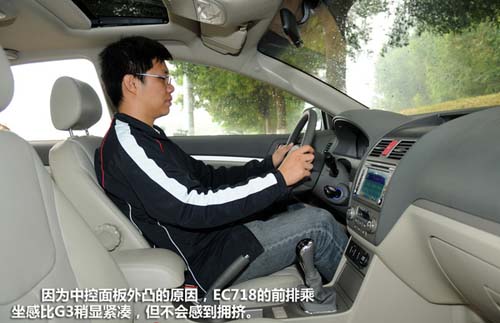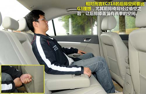 EC718的儲(chǔ)物空間跟G3不相伯仲,但EC718卻贏在細(xì)節(jié)處理上面。例如他的遮陽(yáng)板是帶有夾子的、扶手箱是分兩層的、門(mén)板是可以放飲料的、手剎旁的兩個(gè)杯架底部是高低不同的(避免飲料干擾檔桿)、后排是設(shè)有煙灰缸的等等。