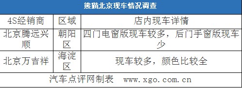 北京地區(qū)僅有兩家熊貓4S經(jīng)銷商,調(diào)查結(jié)果顯示,熊貓四門電窗版車型現(xiàn)車數(shù)量充裕,顏色較全,而后門手窗版車型現(xiàn)車較少,需預(yù)定。價格方面,兩家4S店的報價比較統(tǒng)一,均表示能現(xiàn)金優(yōu)惠4000元,購車后可贈送一些裝飾品,詳情需要到店面談。