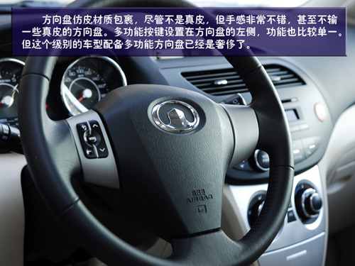 方向盤覆蓋仿皮材質(zhì),盡管不是真皮,但手感非常不錯(cuò),不夸張的說甚至不輸一些真皮的方向盤。多功能按鍵只設(shè)置在方向盤的左側(cè),功能也比較單一。但這個(gè)級(jí)別的車型配備多功能方向盤的有幾個(gè),這樣看來凌傲真的是夠厚道了。