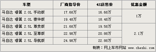一汽馬自達(dá)睿翼 最高優(yōu)惠2.1萬