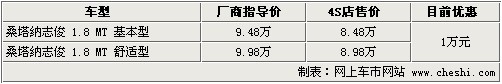 據4S店銷售人員介紹:桑塔納志俊系列目前共有2款車型,分別為基本型和舒適型,基本型是在休閑型基礎上增加配置的一款新車型,售價為9.48萬元。目前1.8升手動基本型無現(xiàn)車,預訂最短等1周時間,最長等3周;1.8升手動舒適型有現(xiàn)車,顏色為黑色。目前全系2款車型最高優(yōu)惠1萬元,最低售價8.48萬,喜歡的消費者可及時與店內聯(lián)系。