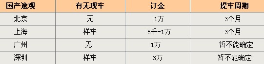 未來(lái)這僅僅一周的時(shí)間包括22日剛上市的風(fēng)云2兩廂,一周之內(nèi)將有十三款新車(chē)隆重登場(chǎng),這其中有小改款車(chē)?yán)?010款驪威,海馬汽車(chē)2010款(海福星、福美來(lái)、歡動(dòng)、普力馬)全系列,另外還有國(guó)產(chǎn)途觀在內(nèi)的眾生一直苦等的新車(chē),這些車(chē)目前都陸陸續(xù)續(xù)出現(xiàn)在各大媒體的鏡頭下筆下,全國(guó)各地的4S店內(nèi)也陸陸續(xù)續(xù)有了他們的身影,但是恐怕大家最關(guān)心的還是這些新車(chē)現(xiàn)在是否接受預(yù)訂,訂金是多少什么時(shí)候能提車(chē),編者特在十三款車(chē)中挑選了四款新車(chē)并在北京廣州上海深圳四個(gè)主要地區(qū)調(diào)查了一下他們的提車(chē)情況,希望能給想購(gòu)買(mǎi)這些新車(chē)的朋友一些幫助,詳情還可咨詢(xún)當(dāng)?shù)氐慕?jīng)銷(xiāo)商。