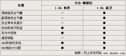 全新捷達(dá)雖然冠上全新二字,但消費(fèi)者仍然不會(huì)對(duì)捷達(dá)的配置有非常大的興趣。對(duì)于這樣一款進(jìn)行過幾次改型的老車型,配置方面不會(huì)有太大變化。在1.6L前衛(wèi)車型上,標(biāo)配了前駕駛員與副駕駛安全氣囊,,保證了前排乘員的安全。駕駛員一側(cè)的安全帶帶有未系提示,時(shí)刻提醒駕駛員保證自身安全。全系標(biāo)配的配置還有電子防盜系統(tǒng)、車內(nèi)中控鎖及ABS+EBD系統(tǒng)。1.6L伙伴并沒有裝備安全氣囊,配置較低。