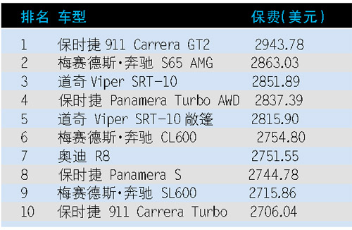 第一名跟第十名的保費(fèi)差距大約也才只有240美金,而在前十名之后的11~20名中,基本上都是梅賽德斯·奔馳的天下,包括CL65 AMG、S600、SL65 AMG以及CL63 AMG都入選在內(nèi),除此之外,還有寶馬M6(硬頂及敞篷版)和760i以及兩款捷豹XKR機(jī)械增壓版本。不過,文章并沒有講明保險(xiǎn)金額的實(shí)際保障內(nèi)容是什么,所以跟國(guó)內(nèi)的保費(fèi)也不太好比較?墒,可以看出,榜單中的這些車輛售價(jià)也并不便宜,這點(diǎn)兒保費(fèi)還真不算什么。(記者陳鑫欣)