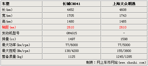 長城CH041車長4452mm、寬1705mm、高1480mm,在尺寸上雖然要比朗逸小一些,但作為車輛最重要的軸距上,兩車同為2610mm,這也意味著CH041與朗逸不僅僅是外形相似那么簡單。在動力上,CH041將搭載長城自主研發(fā)的1.5L CVVT發(fā)動機,具有可變節(jié)氣門技術(shù),在保證強勁動力輸出的同時,又可以達到了良好的節(jié)油性能。
