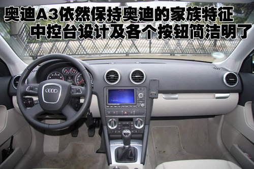 奧迪A3依然保持奧迪的家族特征,中控臺(tái)設(shè)計(jì)及各個(gè)按鈕簡(jiǎn)潔明了。其三輻式真皮方向盤(pán)配備集成控制按鈕,而白色冷光儀表盤(pán)突出視覺(jué)效果的同時(shí),又方便駕駛員讀取信息。