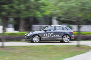 在科技日上,一款令人意想不到的氫燃料電池車——奧迪Q5 HFC(Hydrogen Fuel Cell)氫燃料電池車也出現(xiàn)在試乘車型隊(duì)伍中。我們試乘后的感受是,與內(nèi)燃機(jī)Q5相比,這款車的動(dòng)力毫不遜色,聲音非常安靜,而且這款車排出的只有水而沒有任何廢氣。