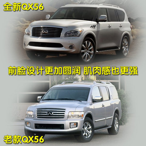 新款QX56外觀方面,厚實(shí)的引擎艙,具有力量感的鍍鉻進(jìn)氣格柵和翼子板透氣孔都在暗示著這款新車強(qiáng)大的動力系統(tǒng)。從整體設(shè)計(jì)上講,只有林肯領(lǐng)航員能有如此的氣勢。但從側(cè)身上來看,新QX56較老款更為圓潤,體現(xiàn)出了英菲尼迪一貫的優(yōu)雅感。