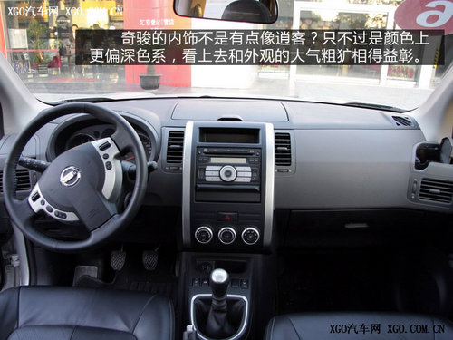 奇駿的內(nèi)飾設(shè)計(jì)與逍客有不少相似之處,只是為了迎合硬朗的外形,車(chē)內(nèi)使用了深色系的顏色搭配,并在細(xì)節(jié)設(shè)計(jì)上更多的選擇了方形,看上去更簡(jiǎn)潔大氣。而且在用料做工上,也比CR-V要厚道一些。