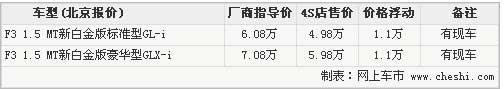 據(jù)比亞迪汽車4S店銷售人員介紹,比亞迪F3目前僅有標(biāo)準(zhǔn)版和豪華版兩款車型在售,兩款車型目前均有現(xiàn)車,顏色也比較齊全。到店購車可以享受1.1萬元的現(xiàn)金優(yōu)惠,標(biāo)準(zhǔn)版降價后跌破5萬,僅售4.98萬元。