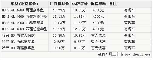 據(jù)長城汽車4S店銷售人員介紹,長城哈弗H3的現(xiàn)車都比較齊全,并且出現(xiàn)了一定的優(yōu)惠幅度。但相比前幾個(gè)月,優(yōu)惠幅度卻有所減少,目前購買哈弗H3 2.4L都可以優(yōu)惠4000元。另外銷售人員表示,長城哈弗H3的廠商指導(dǎo)價(jià)只是白色普通漆車型,金屬漆其他顏色車型需要加價(jià)2000元。