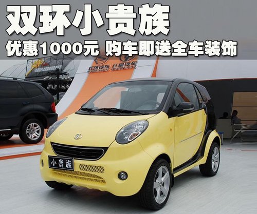 雙環(huán)小貴族車型引起人們關注的主要原因,就是因為外形設計與Smart極為相近,小貴族憑借著低價和小車身也在市場占有一定的地位。通過對北京地區(qū)雙環(huán)小貴族車型的調查,我們發(fā)現(xiàn)小貴族最近不但有降價活動,而且還有好禮相送,具體信息請參考下表: