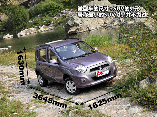 迷你SUV采用了和精靈相同的底盤,確切的說,它是在精靈基礎(chǔ)上對(duì)進(jìn)行了改進(jìn),所以在外形上,這兩款車并沒有太大的差別,3645mm×1625mm×1630mm的車身尺寸比精靈3548mmX1580mmX1581mm大了一圈,主要原因在于增加了車身包圍以及底盤的升高,不過這樣的個(gè)頭仍然看起來十分嬌小。