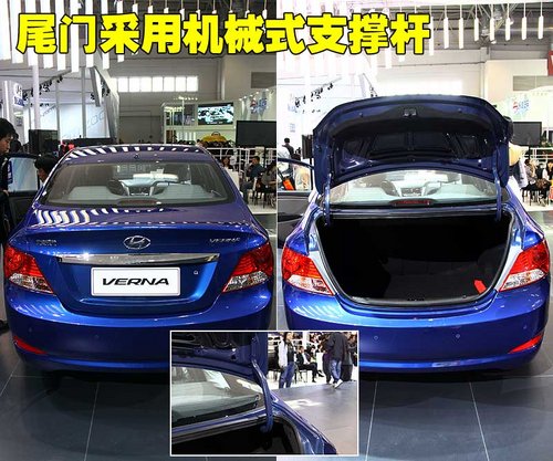 北京現(xiàn)代Verna的后行李廂開(kāi)啟比較便捷,而尾門(mén)外部開(kāi)啟可使用鑰匙實(shí)現(xiàn)操控,機(jī)械支撐桿設(shè)計(jì)開(kāi)啟使很輕松。