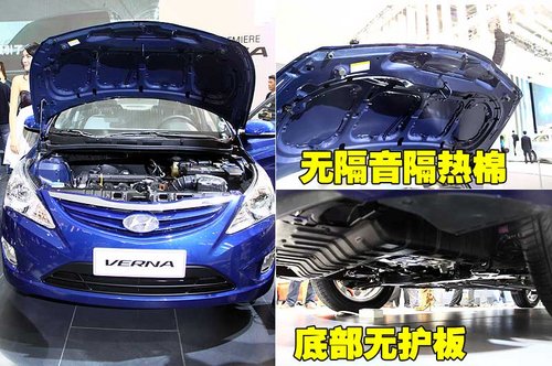 北京現(xiàn)代Verna的發(fā)動(dòng)機(jī)艙布局比較規(guī)整,走線(xiàn)合理。在發(fā)動(dòng)機(jī)蓋上輔以隔音材質(zhì),同時(shí)在靠近發(fā)動(dòng)機(jī)后方的部分也設(shè)有隔音、隔熱層。車(chē)輛底部沒(méi)有裝備的底盤(pán)護(hù)板,使Verna在復(fù)雜路面行駛時(shí)其底盤(pán)少了一重保護(hù),而且這款車(chē)型的發(fā)動(dòng)機(jī)艙蓋開(kāi)啟沒(méi)用采用液壓桿的設(shè)計(jì)。