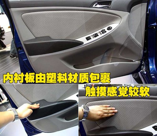 北京現(xiàn)代Verna4只外門拉手與車身同色,金屬感強(qiáng)烈,車門拉手附近做工細(xì)致,開啟的角度與所需的力度適中,沒有 “松散”的感覺,工藝質(zhì)量較好。