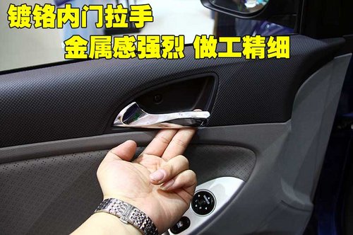 車門內(nèi)側(cè)拉手同樣經(jīng)過(guò)了鍍鉻處理,拉手本身沒有任何松散的感覺,做工十分精細(xì)。