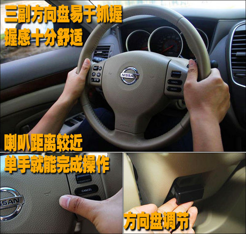 東風(fēng)日產(chǎn)新軒逸為三幅真皮包裹方向盤,車主可以根據(jù)習(xí)慣來自行調(diào)節(jié)方向盤高度。方向盤集成了音量控制、藍牙及定速巡航,在行駛中無需讓手離開方向盤,就可輕松完成駕駛輔助(如定速巡航)與舒適(如音響系統(tǒng)、藍牙等多功能控制系統(tǒng))操作。