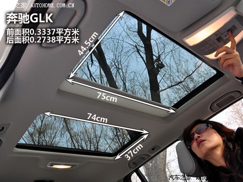 在首次見到GLK的雙天窗時,感覺還是比較喜歡的,但是相比后來的Q5,GLK的天窗就會顯得樸實有余而奢華不足了。說到底,橫在中間那道梁成為了破壞美感的最大障礙。仔細(xì)算下來,前后天窗的面積都不大,全加在一起的面積也不足奧迪Q5。注意哦,在此我們僅僅是評價天窗這一項,不含有其他方面的比較。