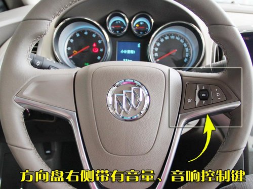真皮縫制的方向盤在10點和14點的位置都設(shè)計了兩個凸起,這種設(shè)計更多的出現(xiàn)在運動車型上,是為了能夠讓駕駛者更加易于操縱方向盤。在三輻方向盤的右側(cè)是多媒體按鈕,能夠用來控制音響系統(tǒng)。