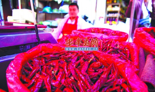 記者走訪了島城的多個農(nóng)貿(mào)市場發(fā)現(xiàn),如今,市場上的干辣椒每公斤可達50多元。