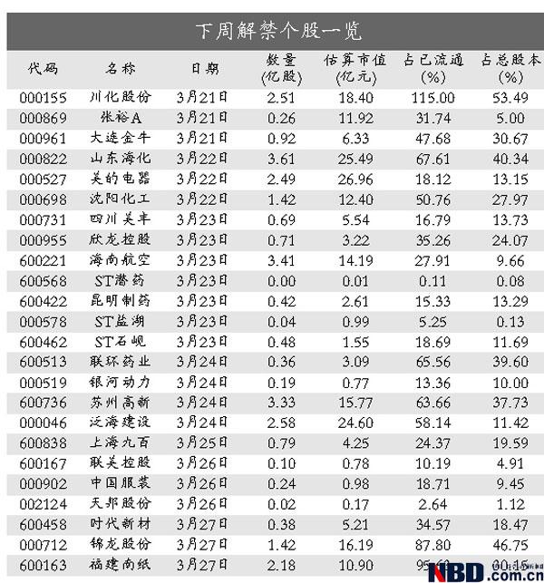 另外福建南紙3月27日有2.18億股定向增發(fā)股份解禁上市。在公司2008年3月定向增發(fā)中,華泰資產(chǎn)管理有限公司認(rèn)購了4000萬股,中國人保資產(chǎn)管理股份有限公司和南平市人民政府國資委分別認(rèn)購了3000萬股和2500萬股,而《天府早報》社等5家股東各認(rèn)購了1000萬股。公司在去年曾有過一次每10股轉(zhuǎn)增5股,因此上述股東認(rèn)購的股份也相應(yīng)的從1.45億股增加到2.18億股。當(dāng)初8家股東的認(rèn)購價格為5.73元/股,而公司股價復(fù)權(quán)后已經(jīng)達(dá)到7.52元,賬面盈利高達(dá)31.24%。市場人士表示,相比其他機(jī)構(gòu)認(rèn)購中金黃金、西飛國際而深套其中不同,這8家機(jī)構(gòu)幸運很多,在去年整個市場低迷的情況還能獲得31.24%的賬面收益,因此在他們所持股份解禁上市后,套現(xiàn)的可能性會相當(dāng)大,投資者也需要格外警惕。(每經(jīng)實習(xí)記者 劉明濤)