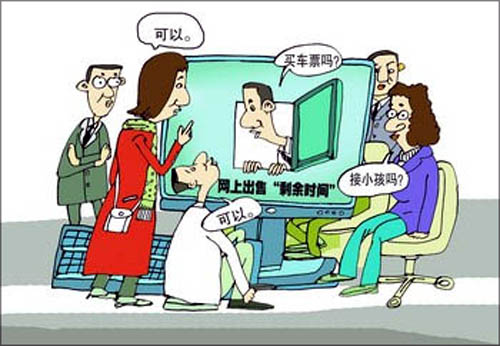 在搜索引擎百度上輸入“出售剩余時間”,可得到相關網頁400多萬篇,“出售時間”生意的火爆可見一斑。“你想干什么我來幫你完成,給你節(jié)約時間,用我的時間來給你辦事,然后你支付一定的費用,這就是‘出售剩余時間’。”網友劉女士在廣告上如此解釋“出售剩余時間”。
