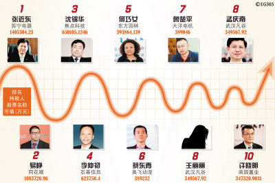 2009上市公司年報(bào)披露工作落下帷幕,股市富豪悄然浮出水面,根據(jù)對(duì)上市公司年報(bào)的自然人股東數(shù)據(jù)進(jìn)行整理匯總,制作出《中國(guó)股市富豪榜》,在所有的自然人股東中,蘇寧電器張近東以140億元資產(chǎn)穩(wěn)居榜首,第二名和第三名分別是持有同花順108億元市值的自然人股東易崢和持有焦點(diǎn)科技65億元市值的沈錦華。(來(lái)源:國(guó)際金融報(bào))