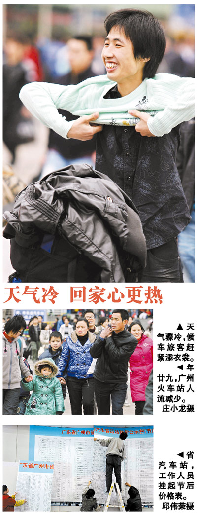 本報訊 (記者楊進 實習生朱志超)隨著節(jié)前春運進入尾聲,廣州火車站客流明顯減少。