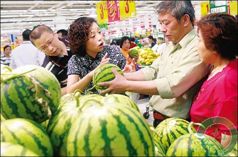 雖然今年的瓜小,但是也有一部分市民卻為此“偷著樂”,上海商報記者小王打趣地告訴本網(wǎng),“今年的西瓜比往年,是真的小,大概一個正好夠一個人吃的,公平又健康,歡迎你來看世博會時好好品嘗!(余曉芬)