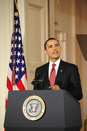 美國總統(tǒng)貝拉克·奧巴馬9日晚舉行就任以來首次黃金時(shí)間段新聞發(fā)布會(huì)。