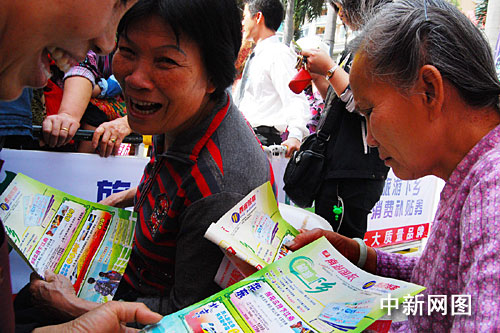 而肇慶市七星巖牌坊廣場(chǎng)也好不熱鬧,擠滿了特意前來(lái)選購(gòu)“旅游下鄉(xiāng)”線路的肇慶各鄉(xiāng)鎮(zhèn)農(nóng)民,看到那么多質(zhì)優(yōu)價(jià)廉的旅游線路,他們臉上都綻放出燦爛的笑容。