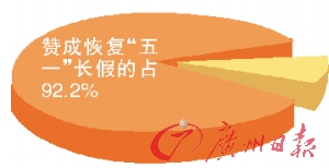 據(jù)了解,兩會(huì)以來,已有數(shù)十名代表委員在兩會(huì)的各個(gè)場(chǎng)合為“五一”黃金周大聲疾呼。而在網(wǎng)上的調(diào)查中,網(wǎng)民對(duì)恢復(fù)“五一”黃金周的提議支持率也很高,在人民網(wǎng)“你是否贊成恢復(fù)‘五一’長(zhǎng)假”的調(diào)查顯示,共有500多萬名網(wǎng)友參與了網(wǎng)上調(diào)查,其中贊成恢復(fù)“五一”長(zhǎng)假的占92.2%。