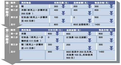 例如,買100元送50元和買200元送100元相比,雖然折扣都是6.67折,但第一種方式由于購買金額的限制較小,所以選取商品的靈活性更高,這樣消費者就可以購買多樣的小額商品并享受累計優(yōu)惠。