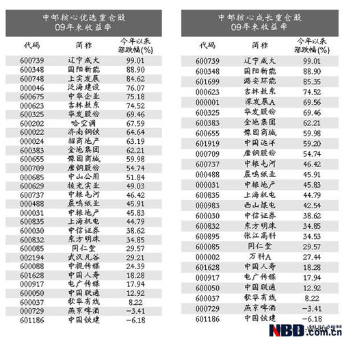中郵系基金一向以高倉位操作而著稱,不過,高倉位操作的基金并不只中郵一家,中郵系基金業(yè)績一馬當(dāng)先秘訣何在?它選擇重倉股究竟有何獨(dú)到之處呢?記者查閱中郵系基金2008年年報(bào)發(fā)現(xiàn),中郵系基金4季度重倉的地產(chǎn)、能源股漲勢兇猛,為其成功奪魁貢獻(xiàn)不小。
